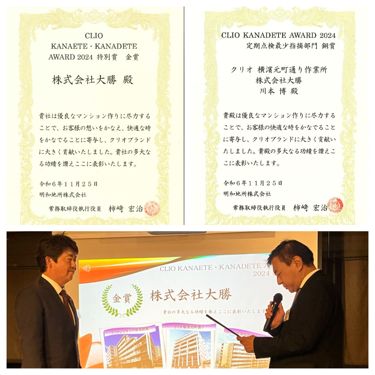 CLIO KANAETE・KANADETE AWARD2024 金賞|横浜の総合建設会社「株式会社大勝」- 建物・ビルの解体、土地造成・舗装工事、マンション建築、外壁補修・大規模修繕工事など様々な建築工事や土木工事の実績多数!