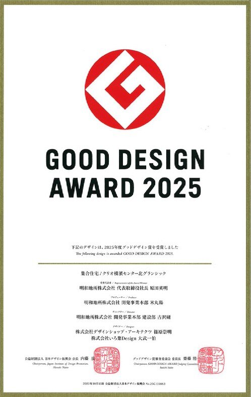 明和地所株式会社様より御発注頂きました「クリオ横濱センター北グランシック」が2025グッドデザイン賞を受賞いたしました。